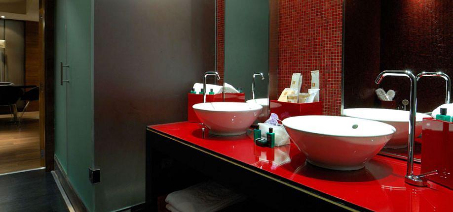 Sobe su dizajnerski uređene s crvenim i crnim tonovima, parketom na podu, TV uređajima ravnog ekrana, klimom, sefom, mini barom i kupaonicom. Gostima je na raspolaganju besplatan pristup internetu, a WIFI Premium je uz nadoplatu.